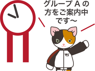 「時間差入場」とは、整理番号(グループ)ごとに入場時間を分けてご案内する方法です。