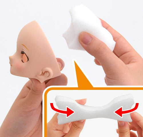 スポンジに指を差し込み、首のジョイントが入るスペースを確保しつつボディに取り付ける。